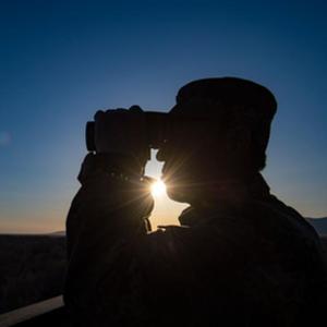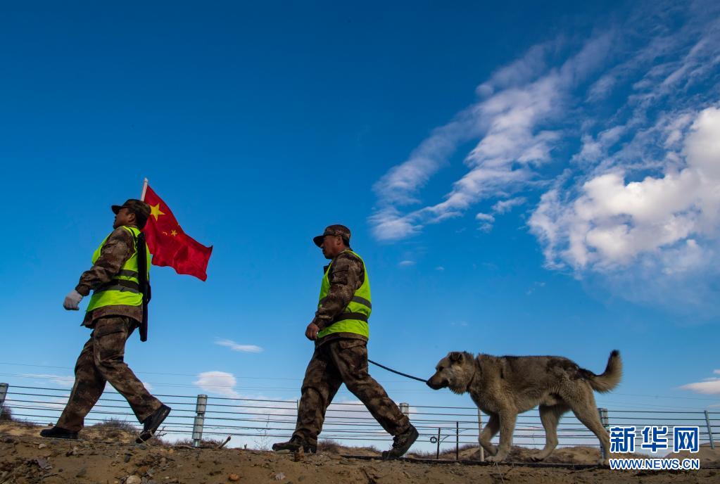 新疆生產(chǎn)建設(shè)兵團第10師185團職工馬軍武(右)在巡邏途中(4月9日攝)。