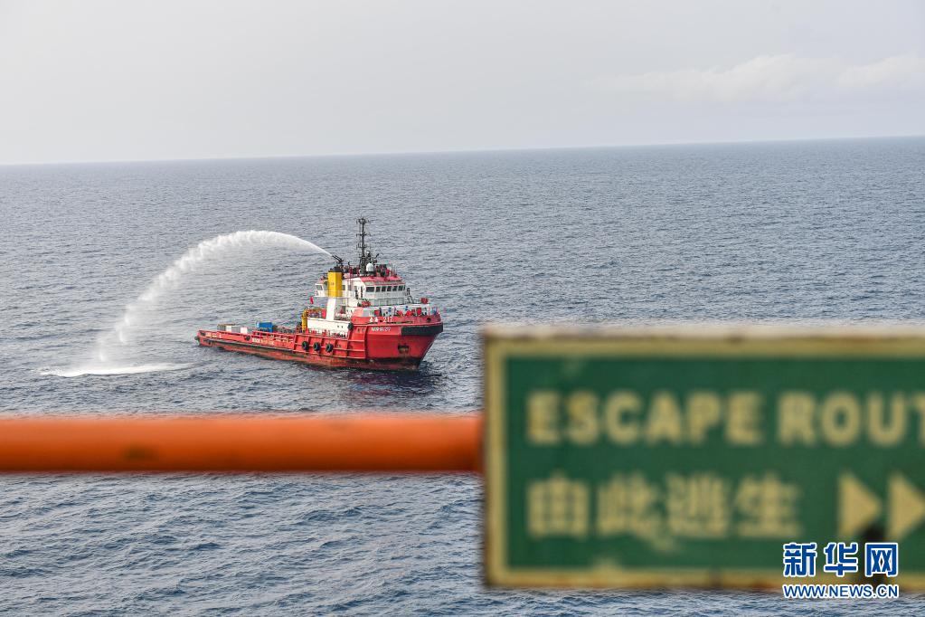 4月25日,為中國(guó)海油樂東15-1氣田運(yùn)送物資的拖船在南海北部海域參與該氣田舉行的應(yīng)急演練。