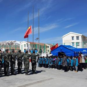 當日是青海果洛瑪多縣花石峽鎮(zhèn)藏文中心寄宿制小學震后復學第一天,學校邀請他以“國家、奮斗、團結(jié)”為主題,和孩子們進行交流。