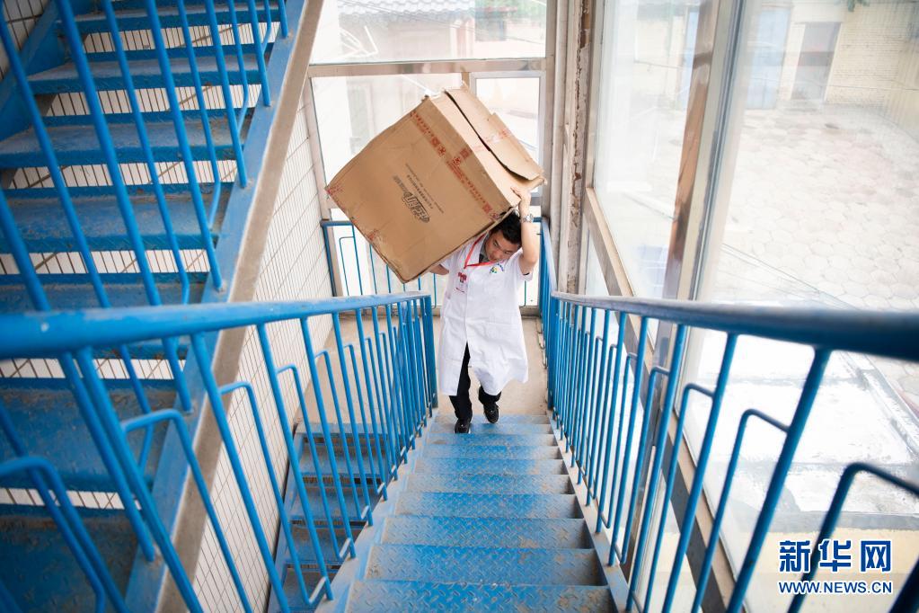 在太原市社會(huì)(兒童)福利院,黨龍祥在搬運(yùn)社會(huì)愛心人士捐贈(zèng)的玩具(5月26日攝)。新華社記者 楊晨光 攝