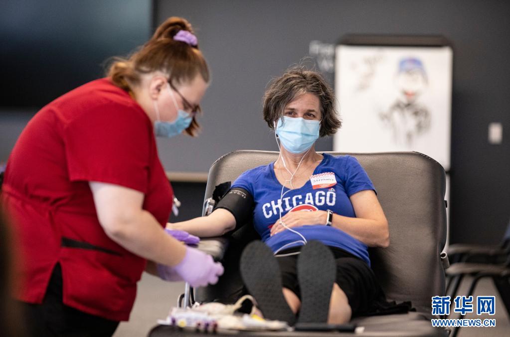 這是6月14日在美國(guó)芝加哥的大芝加哥地區(qū)紅十字會(huì)一獻(xiàn)血站內(nèi)拍攝的獻(xiàn)血志愿者。新華社發(fā)(喬爾·萊納攝)