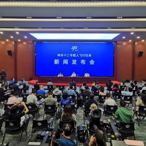 6月16日,神舟十二號載人飛行任務(wù)新聞發(fā)布會在酒泉衛(wèi)星發(fā)射中心召開(手機拍攝)。新華社記者 琚振華 攝