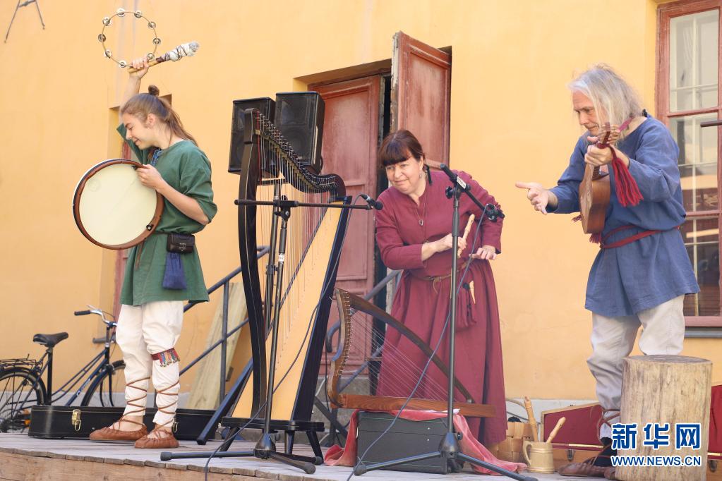 7月1日,演員在芬蘭圖爾庫舉行的“中世紀(jì)市集”上表演。