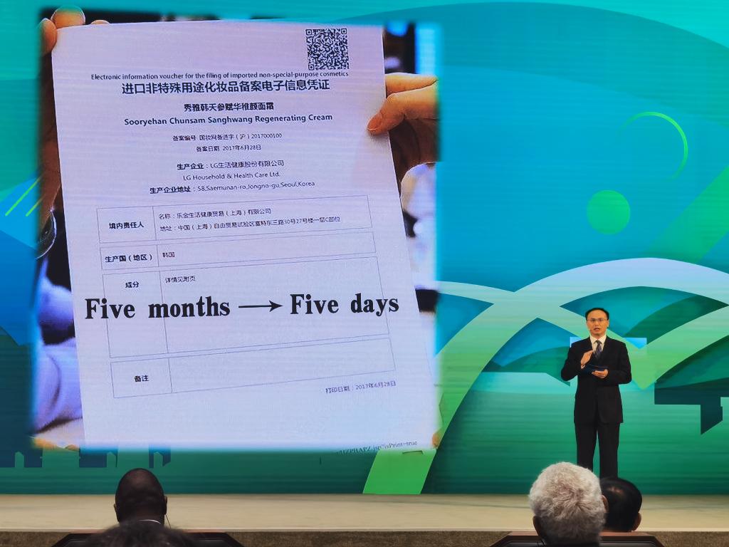 2021年6月16日,在“中國(guó)共產(chǎn)黨的故事——習(xí)近平新時(shí)代中國(guó)特色社會(huì)主義思想在上海的實(shí)踐”特別對(duì)話會(huì)上,中國(guó)(上海)自由貿(mào)易試驗(yàn)區(qū)管委會(huì)政策研究局副局長(zhǎng)鄭海鰲進(jìn)行講述。 新華社記者 吳宇 攝