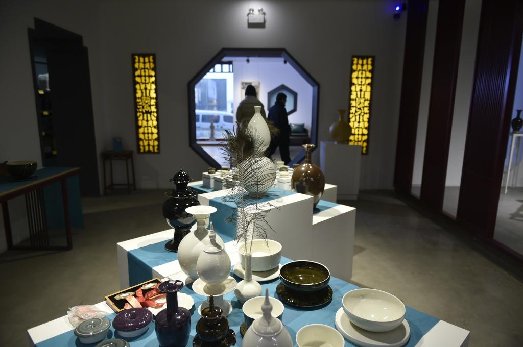 这是12月25日在河北省曲阳县拍摄的一家定瓷生产企业的展厅。