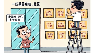 開(kāi)展達(dá)標(biāo)評(píng)比、創(chuàng)建示范活動(dòng),本是以標(biāo)兵引領(lǐng)推動(dòng)工作落實(shí)的有效之舉。但是一些部門(mén)卻將發(fā)牌視為“工作下沉”的象征,認(rèn)為“掛牌即落實(shí)”,甚至將掛牌數(shù)量與考核排名掛鉤,大搞“繁瑣哲學(xué)”,動(dòng)輒開(kāi)發(fā)出上百項(xiàng)指標(biāo),以此下移壓力。部分社會(huì)組織甚至以“達(dá)標(biāo)創(chuàng)建”之名創(chuàng)收牟利,造成負(fù)面影響。