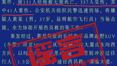 近日,有網(wǎng)民散布虛假的“警情通報(bào)”,造謠傳播云南昆明交通事故“致131人死亡,337人受傷”等不實(shí)信息,公安機(jī)關(guān)核查后,依法對(duì)造謠者進(jìn)行了刑事拘留?!八{(lán)底白字”的“警情通報(bào)”是公安機(jī)關(guān)權(quán)威發(fā)布的重要渠道。不法分子竟敢冒用官方標(biāo)識(shí),將“2死9傷”惡意篡改成“131人死亡、337人受傷”,并編造聳人聽(tīng)聞的細(xì)節(jié),真是膽大包天!