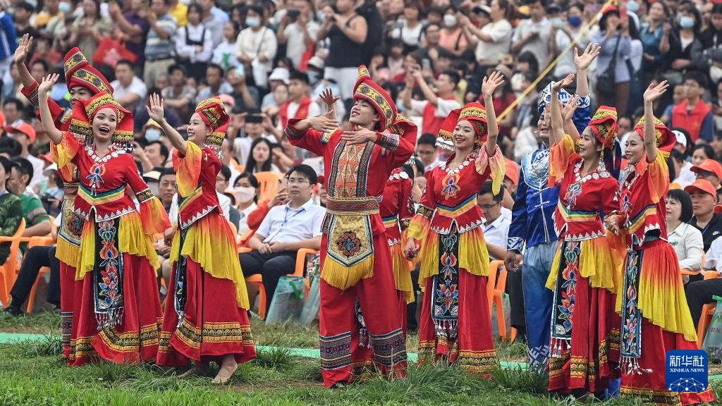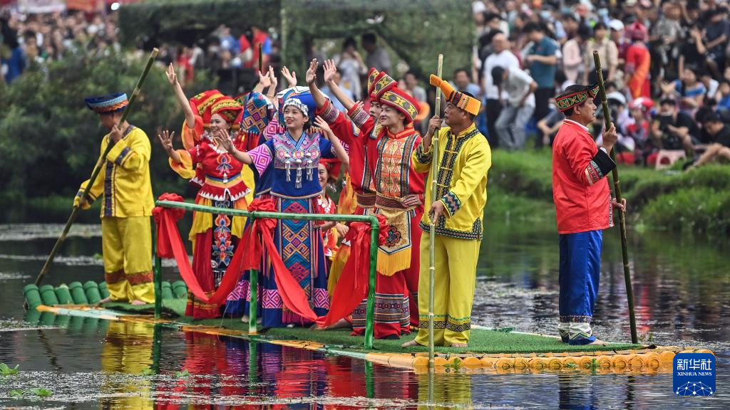 当日,广西钦州市在钦北区贵台镇洞利江畔举行实景演出,欢庆“三月三”传统佳节。