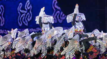 4月25日,在山东沂山风景区,演员在祀山大典上表演“乐舞”。