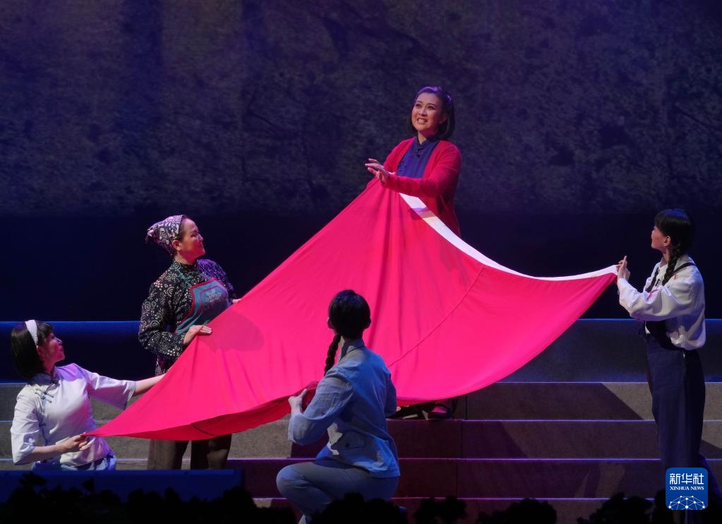 4月26日,吉林省戏曲剧院的演员在开幕式演出现场表演吉剧《江姐》选段。