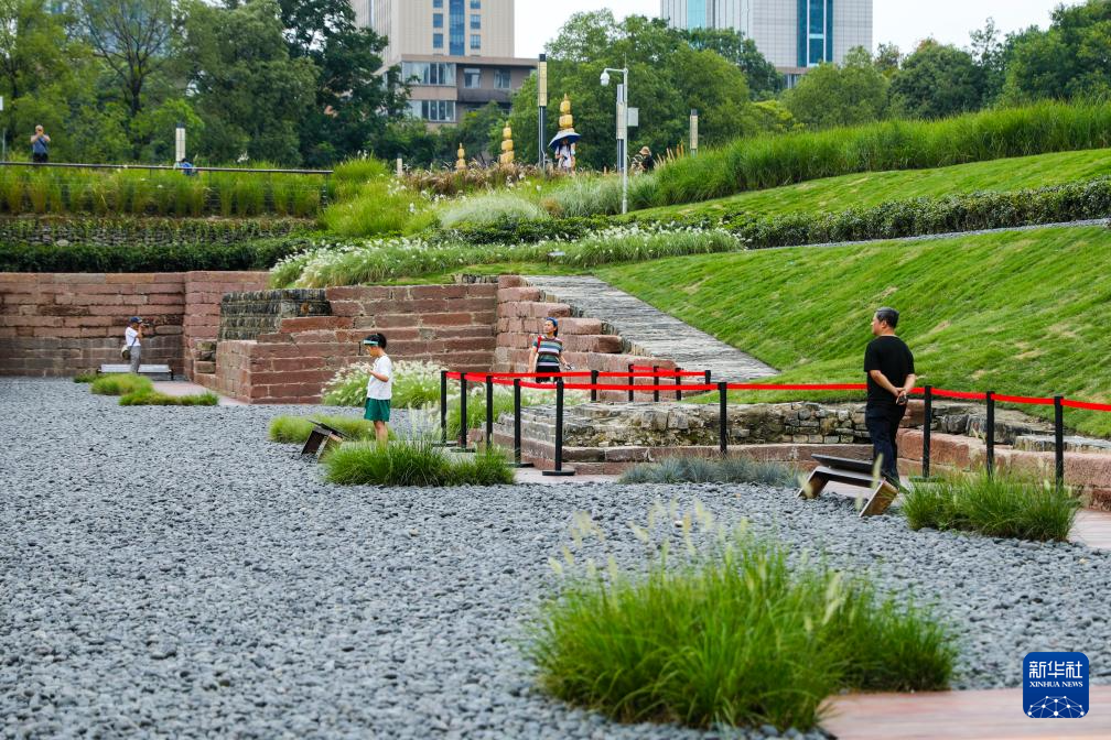 7月20日拍摄的位于成都体育中心内的东华门遗址公园内场遗址区(无人机照片)。