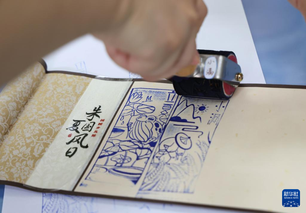 8月20日,在“朱夏国风日”传统文化沉浸式体验活动中,国家图书馆工作人员为孩子们制作国风卷轴。