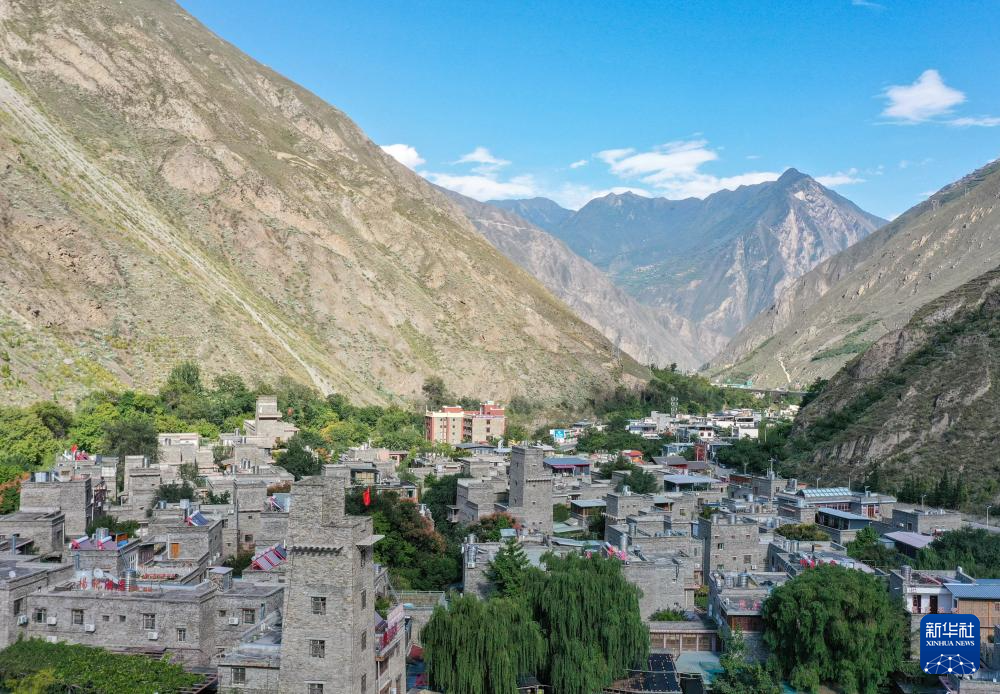 9月13日拍摄的桃坪羌寨新寨(无人机照片)。