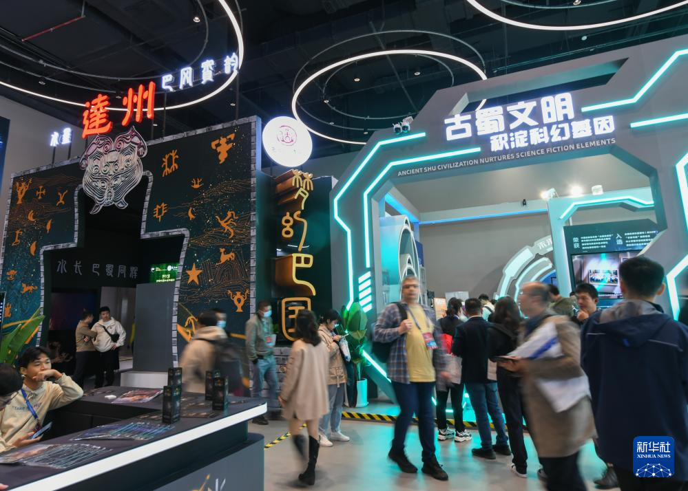 这是10月19日在2023成都世界科幻大会主题展览上拍摄的巴蜀文化主题展区。