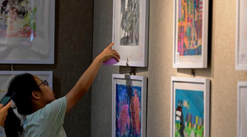 当日,十竹斋木版水印艺术作品展在暨南大学广州石牌校区举行。国家非遗项目木版水印技艺代表性传承人魏立中在展览现场为学生导赏、授课,并指导学生体验木版水印手作的乐趣。