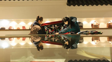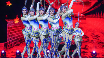 这是四川省遂宁市杂技团带来的杂技《景泰蓝的遐想——顶碗》(11月17日摄)。