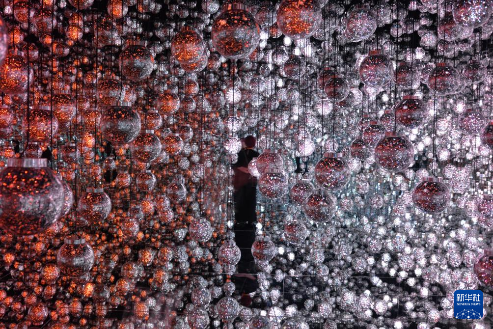这是11月20日在日本东京“teamLab无界”美术馆的媒体预览活动上拍摄的艺术作品“泡泡宇宙”。