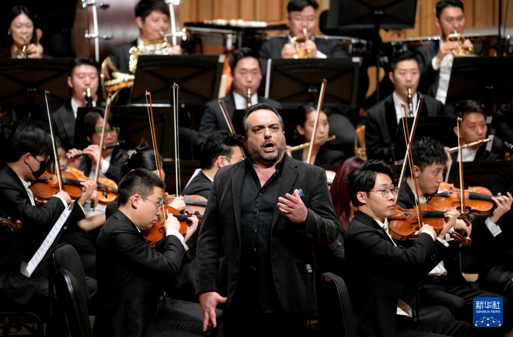 12月30日,在2024西安新年音乐会现场,意大利男高音歌唱家詹卢卡·特兰诺瓦在表演。