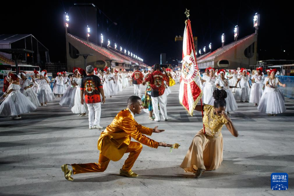 1月7日,在巴西里约热内卢,演员们参加狂欢节表演彩排。