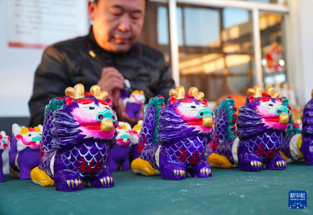 春节临近,在山东潍坊高密市姜庄镇聂家庄村,当地村民制作龙造型泥塑供应各地市场。聂家庄村有制作泥塑的悠久传统,2008年聂家庄泥塑被列为国家级非物质文化遗产。