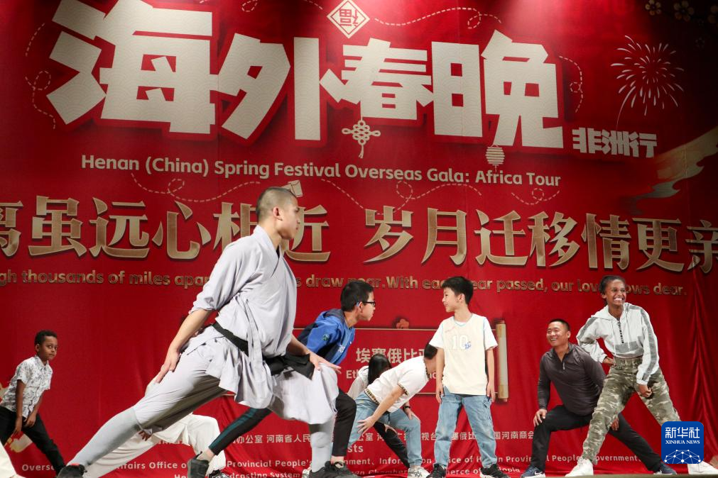 为庆祝即将到来的中国龙年春节,“中国·河南海外春晚非洲行”当晚在亚的斯亚贝巴国家剧院上演。功夫、杂技、歌曲、柔术、变脸、舞蹈等精彩节目吸引了众多观众。在中场休息期间,观众还上台与演员们互动。