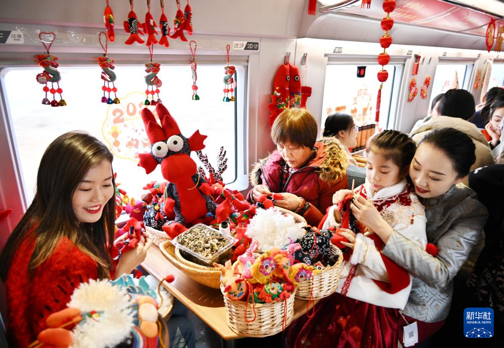 当日,中国铁路济南局集团有限公司青岛客运段在齐鲁环游线G6955次列车上开展“年俗非遗进高铁”活动,让旅客在旅途中感受传统文化的魅力,营造浓郁的节日氛围。