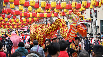 2月19日,非遗项目跑竹马民间艺人与网友互动。
