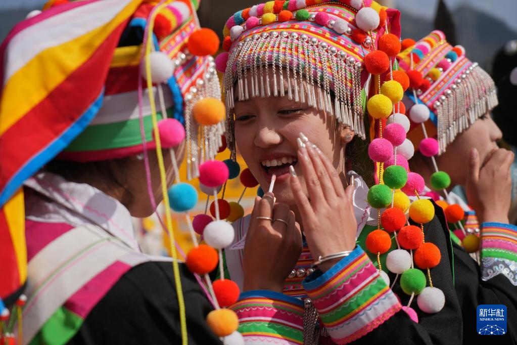 2月20日,人们在盈江县苏典乡阔时节活动上准备跳“阔时大嘎”舞。