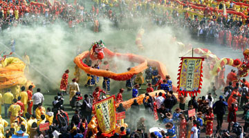 2月21日,演员延翔宇在澳大利亚悉尼“四海同春”访演活动上表演杂技《十面埋伏》。