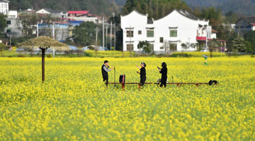 3月19日,游客在安仁县稻田公园休闲游玩。