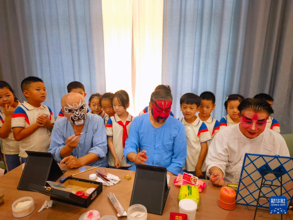 武凌云(前中)在太原市杏花岭区新建路小学校与小朋友交流(2023年6月26日摄)。