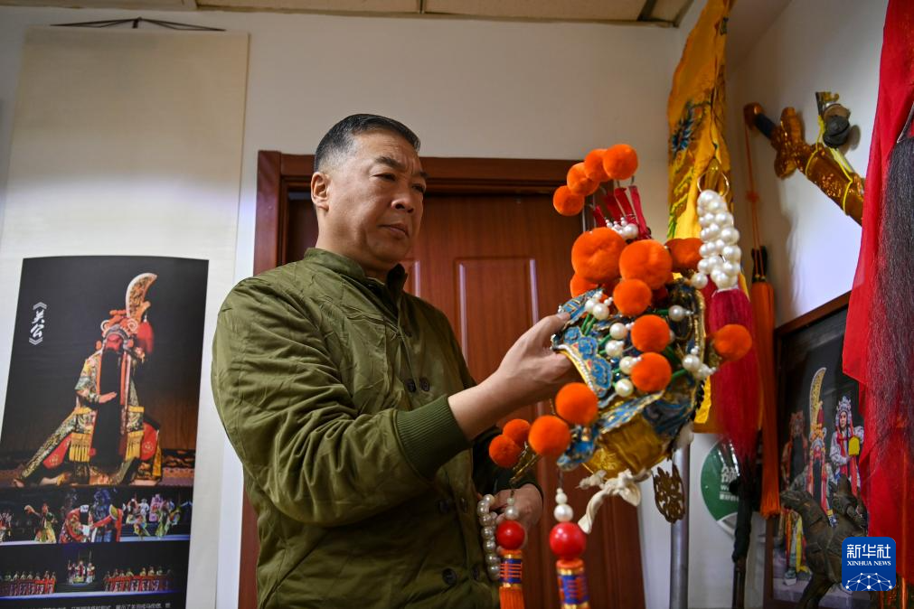 武凌云在太原市晋剧艺术研究院整理道具(2月6日摄)。
