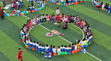 4月9日,申涛在位于营口市的家中指导女儿申圣丹进行缂丝创作。