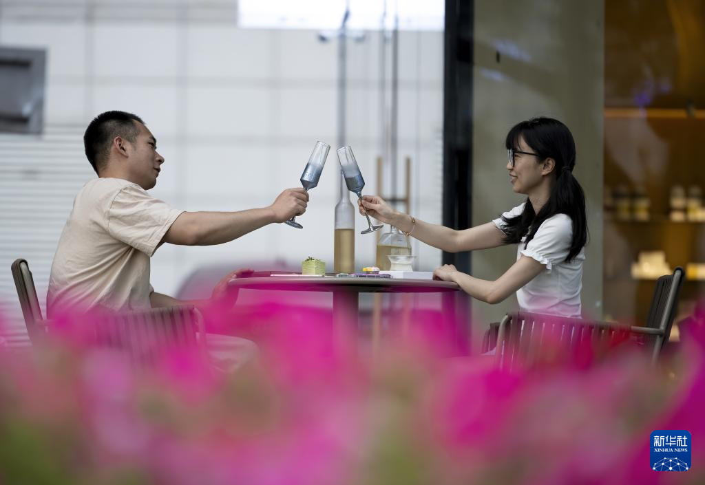 4月14日,消费者在福州东百大楼春伦ITEAMO茶空间品尝各式茶饮。