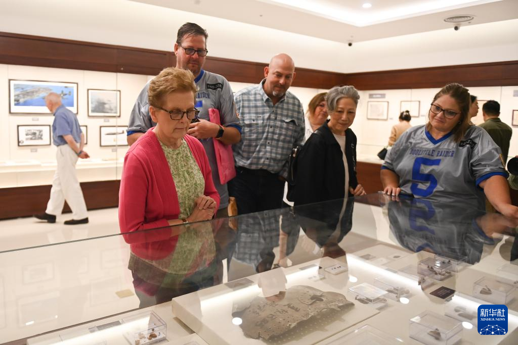 在衢州江山市档案馆,获救美国军人后代参观“杜立特行动”江山大救援专题展览(4月16日摄)。