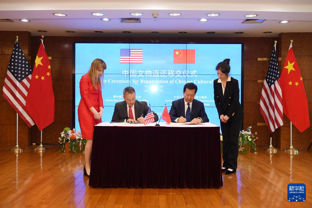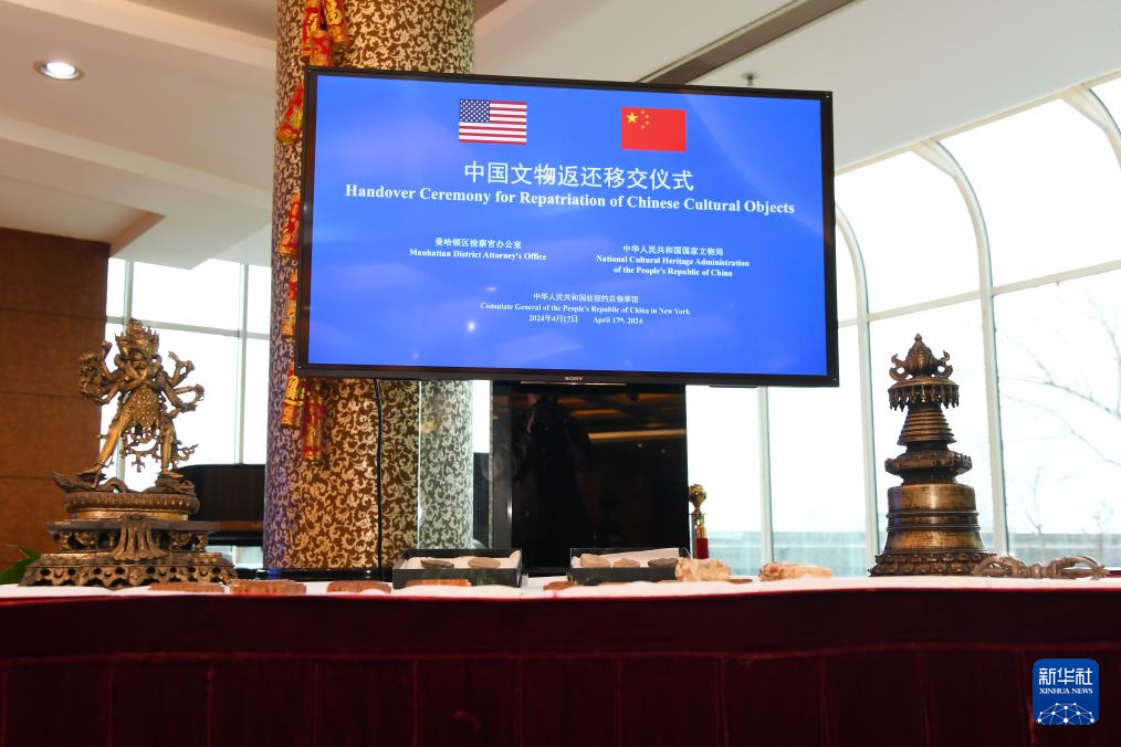 4月17日,在美国纽约中国驻纽约总领馆,中美双方代表出席中国流失文物艺术品返还移交仪式。
