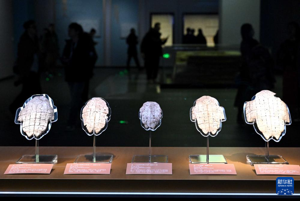 2024年2月26日,参观者在河南安阳殷墟博物馆新馆内观看展出的刻辞卜甲。