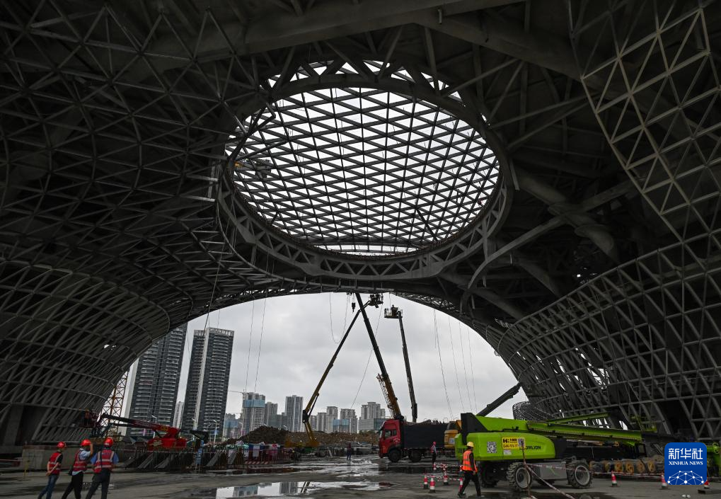 湛江文化中心三面环海,包括大小剧院、美术馆、博物馆等功能区域,建成后将成为湛江文化新地标。