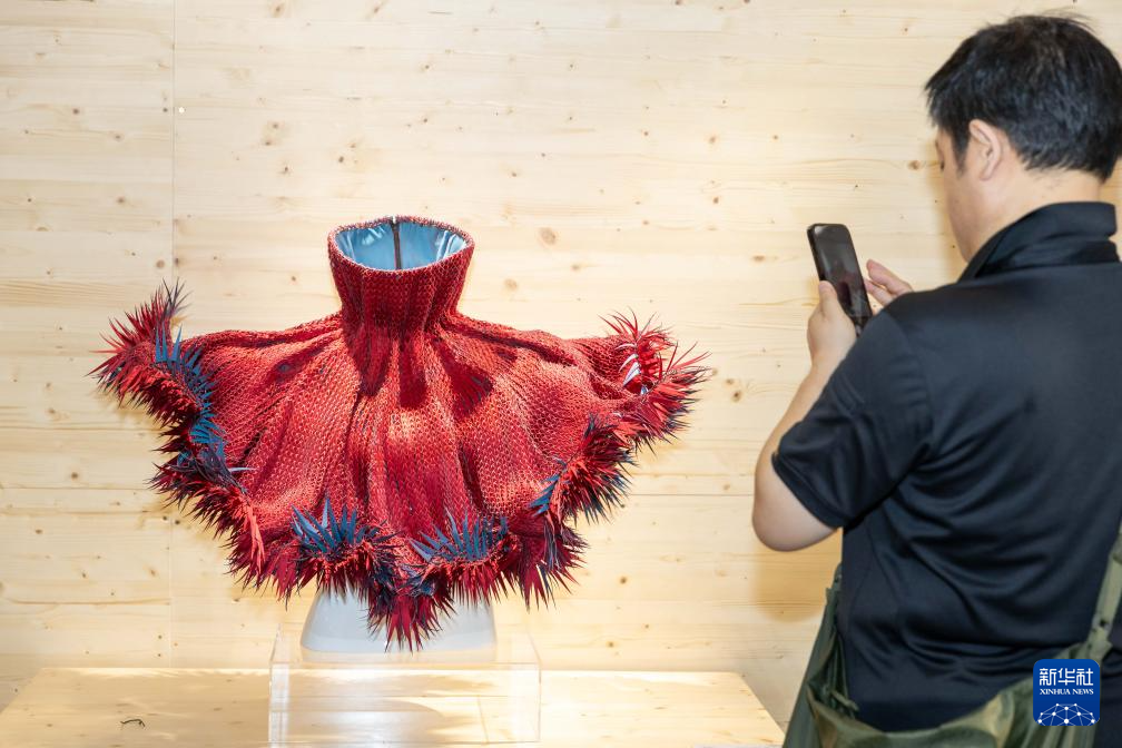 6月19日,观众拍摄可穿戴交互装置《共振》。
