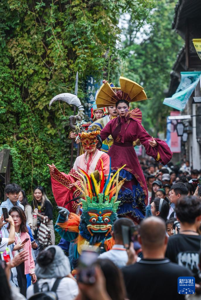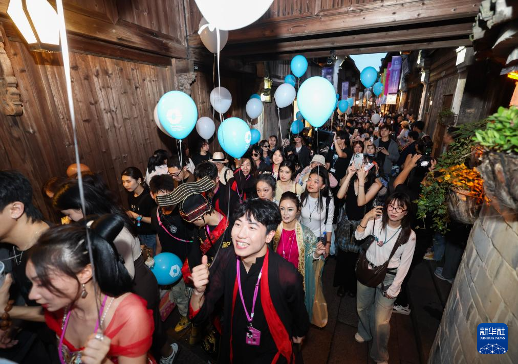 10月17日拍摄的乌镇戏剧节古镇嘉年华的踩街巡游。