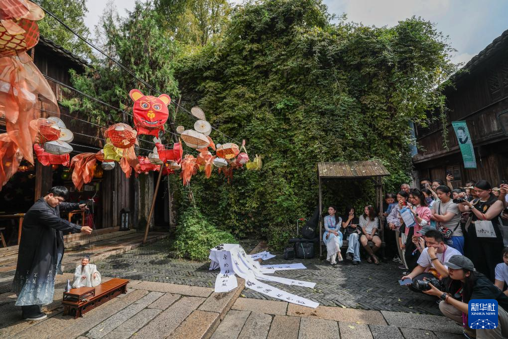 10月17日拍摄的古镇嘉年华系列活动中的木偶戏演出《将进酒》。