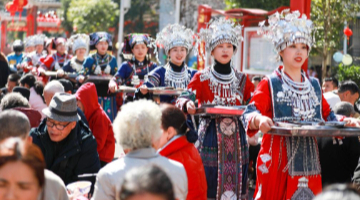 1月14日,浙江省嘉兴市南湖区子城遗址公园上演“宋韵流芳·嘉兴记忆”传统民俗演出。