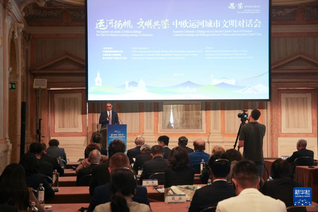 9月27日,在意大利威尼斯,与会嘉宾出席“运河扬帆 文明互鉴”中欧运河城市文明对话会活动。新华社发