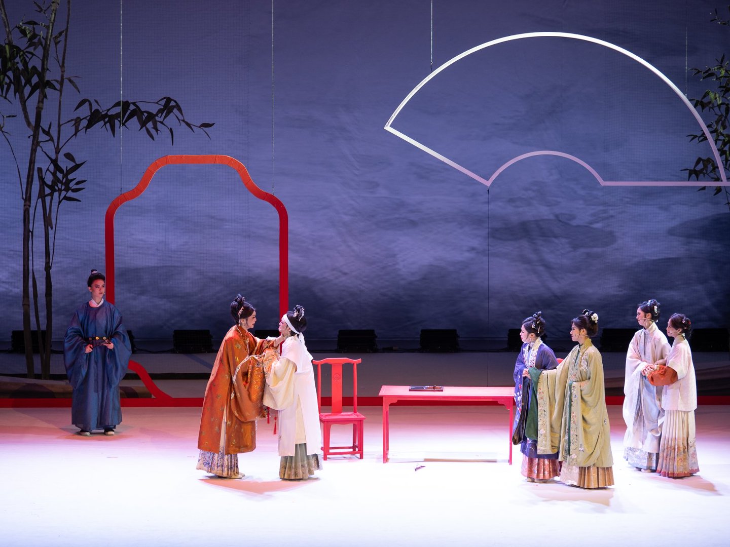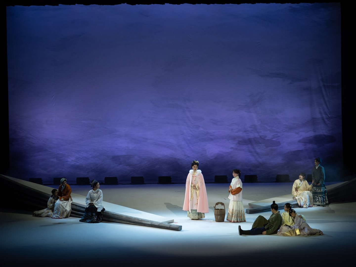 此外,舞美设计也独具匠心,遵循“写意与写实结合”的原则,运用现代舞台技术,营造出既古朴典雅又富有象征意义的戏剧空间。古朴典雅的服装与道具,注重细节,力求还原历史韵味。
