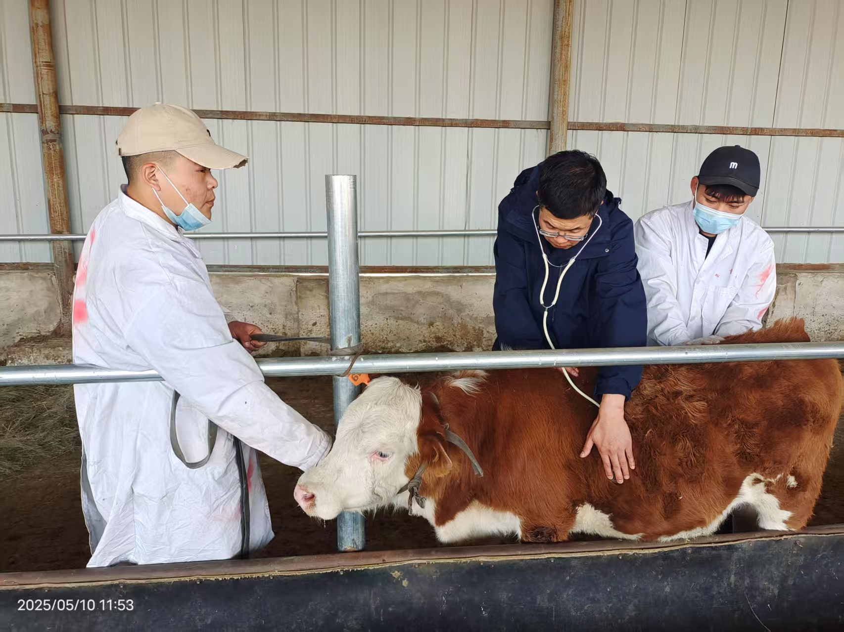 锡林郭勒职业学院师生在合作企业进行牛的健康监测、疫病防控实操
