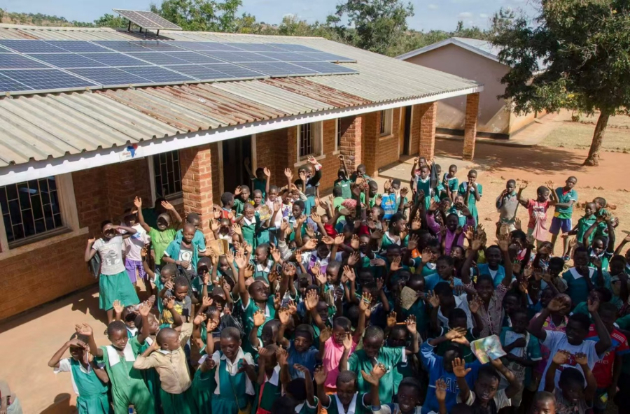 在马拉维,隆基向当地捐赠的光伏组件被陆续送至12所学校和周边村庄。对许多孩子来说,这是他们第一次在明亮的灯光下学习,并接触基础的数字教育资源,从而获得了更公平的成长起点。
