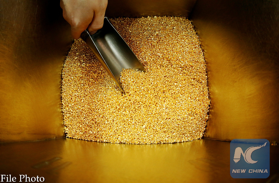 An employee takes granules of 99.99 percent pure gold before packing them at the Krastsvetmet non-ferrous metals plant in the Siberian city of Krasnoyarsk, Russia October 24, 2016. (REUTERS PHOTO)