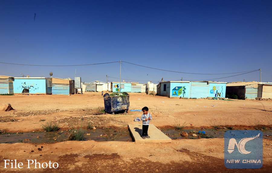 A Syrian refugee child is seen at Zaatari Syrian refugee camp in the Jordanian city of Mafraq near the border with Syria on Sept. 12, 2017. (Xinhua/Mohammad Abu Ghosh)