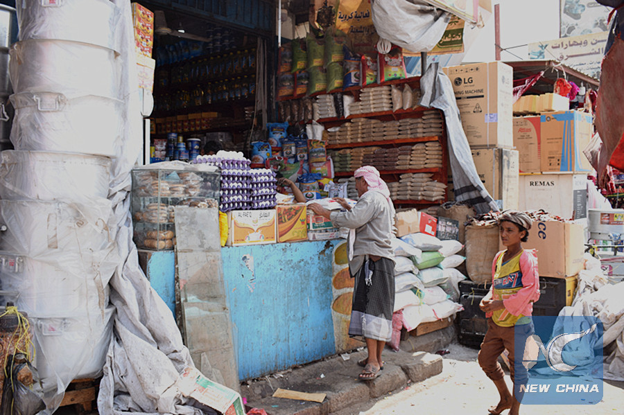 In the picture taken on March 19, 2018, business is slow at a grocery store in Aden, Yemen due to the recent sharp rise in food prices. (Xinhua/Murad Abdo)