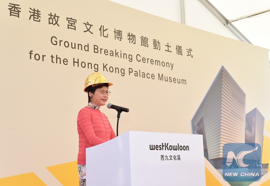 At a groundbreaking ceremony for the HKPM held Monday in Hong Kong's West Kowloon Cultural District, Lam said "as the much anticipated West Kowloon Cultural District is gradually becoming a prominent landmark on the waterfront of Victoria Harbor, the Hong Kong Palace Museum will be the jewel on the crown."